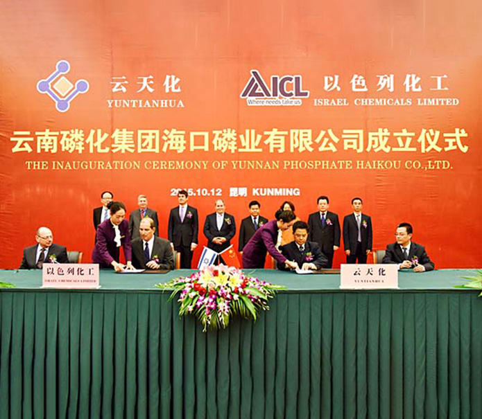 2015年10月12日,雲天化集團和以色列化工集團的合資合作項目——雲南磷化集團海口磷業有限公司在昆明海埂花園酒店舉行成立儀式。